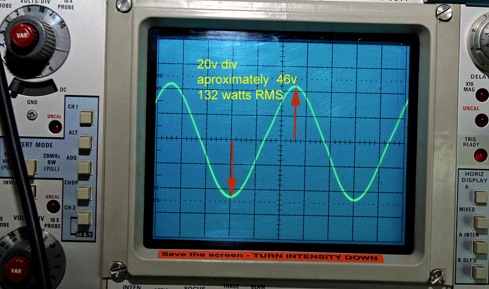 time I run this kind of test it will be precise. Never the less, the amp is producing 46v-47v. That is 132+ watts RMS per channel... not to shabby.