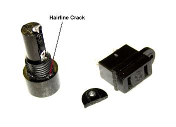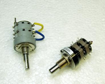 Original speaker selector switch (on left) and a drop-in replacement. These are mini switches that measure less then an inch across. As with the bakelite, the replacement switch was not easy to come-by. I found several inferior open frame switches, and several enclosed switches that did not meet the current and voltage specs of the original. I finally found one from Grayhill. This is a very high-end (and expensive) switch with a mill-spec approval for use in military weapon systems. Grayhill manufactures components, displays, and other products for rough service, such a military, police, and medical industries. This switch not only surpasses the electrical specs of the original, but is as tough as nails also.