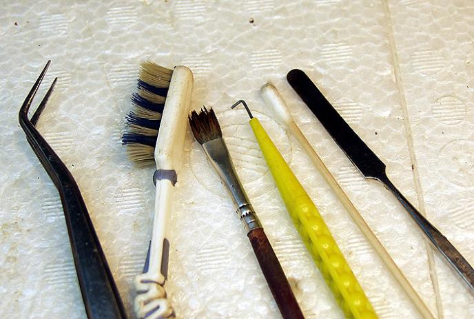 the leads. Tweezers to pick off the debris and a small bursh for applying the lacquer thinner.