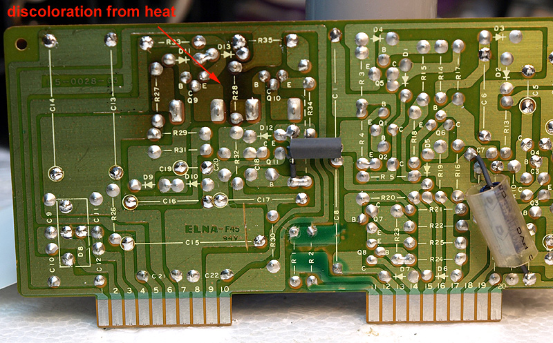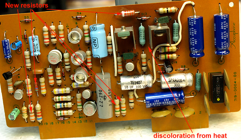 Here we have the power supply board. It too, had a number of resistors that had the insulation