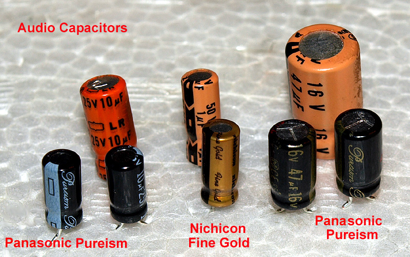 The old caps are sitting in the background as referece. The audio caps used in this project were Nitchicon Fine