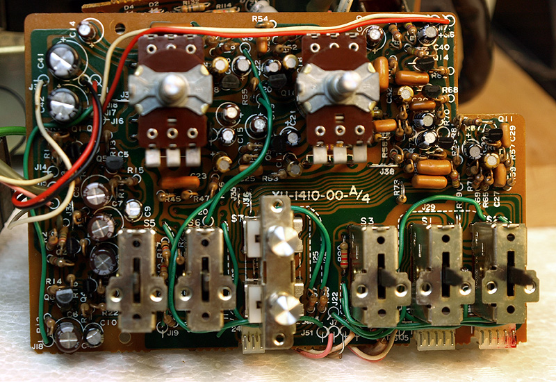 Here we have the tone control and preamp section. The capacitors are very crowded (lots of audio caps).