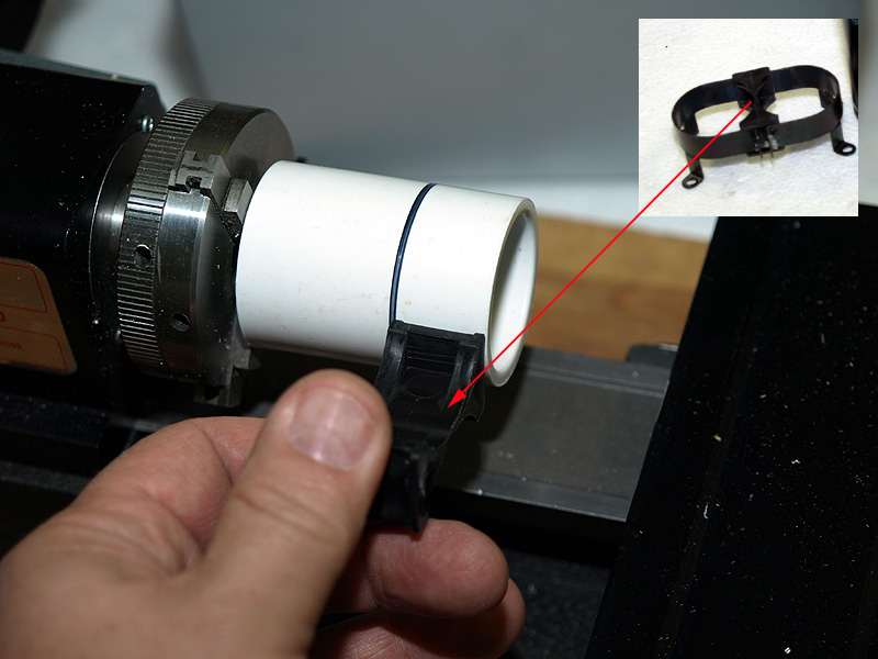Chuck it into a lathe, and mark the width of the clamp for reference.