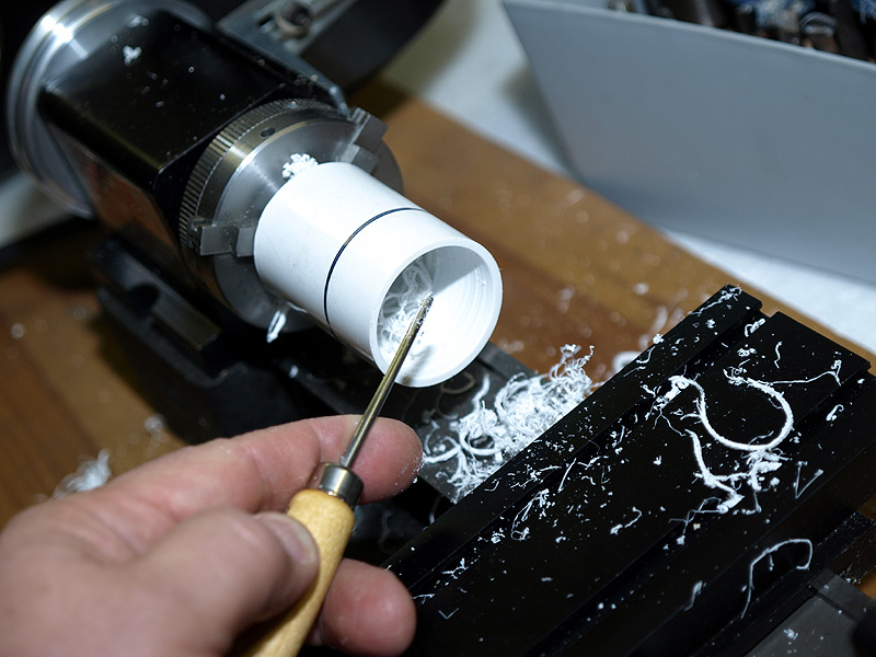 Next, use a mini gouge and ream the inside of the pipe joint out by about 1/16 of an inch, all the way back to the reference
