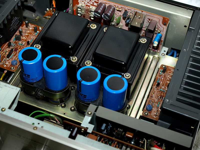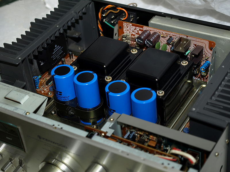 Here you can see all the new caps installed. You can also see that the feed to the preamp from the