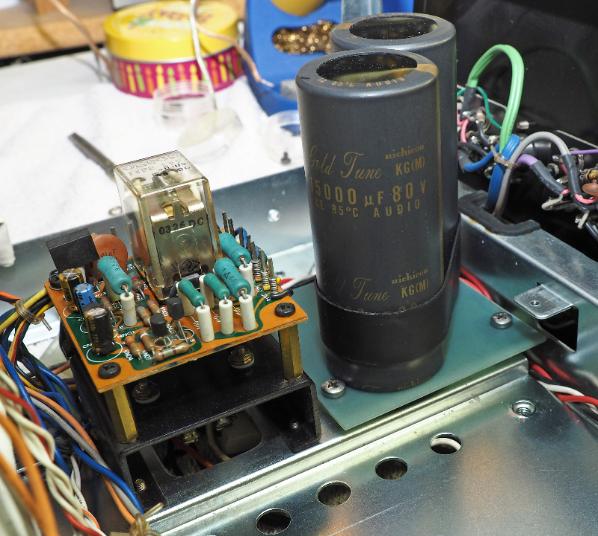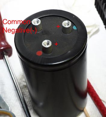 I etched a custom PCB to mount two 15,000uf Nichicon Fine