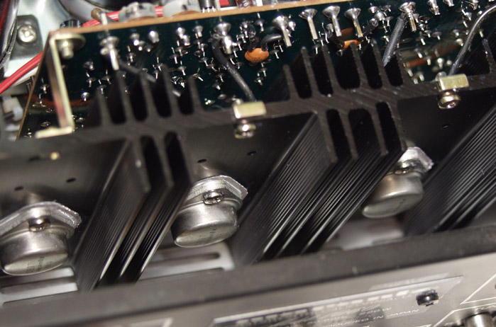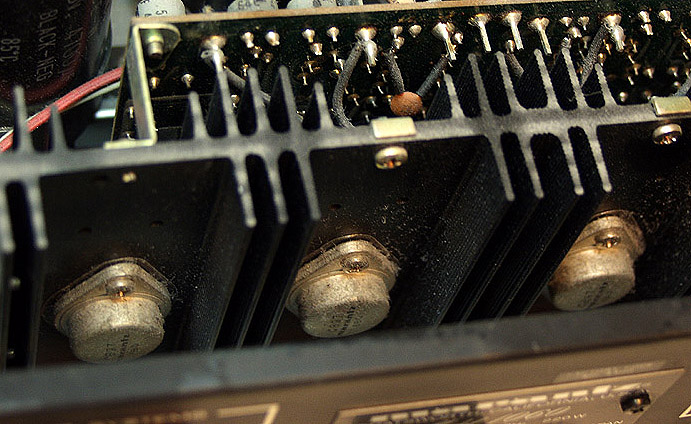 A couple of before and after shots of the transistors and heat-sync... can you guess which is which?