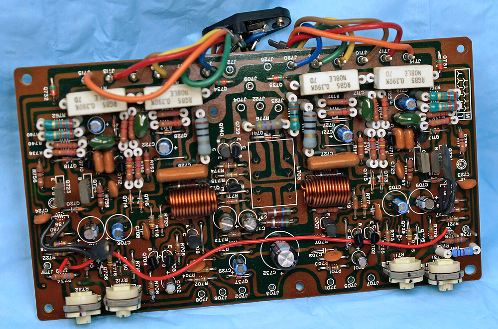 Cleaned up... Audio caps installed, transistors and resistors checked. I replaced one resistor that was showing signs of heating - R733 in lower