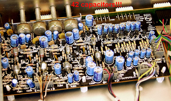 Input board, 42 caps... AAhhhhh!!! I have never seen a preamp with as many caps and transistors as this