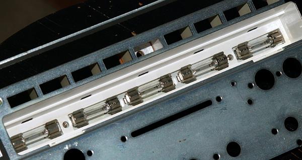 The yellowing of age cuts down on the brightness of the display lights. Restoring the